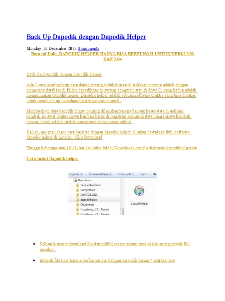 One of the best quick solution to uninstall dapodik helper 29 is to use advanced uninstaller pro. Berikut ini merupakan daftar perubahan pada aplikasi dapodik 2021: Berikut ini adalah file tentang free download dapodik helper terbaru yang bisa bapakibu unduh secara gratis dengan menekan tombol download pada tautan link di bawah ini. Dapodik helper versi baru dapodik helper sudah terbukti cukup membantu operator sekolah untuk membackup database hasil entry data di aplikasi dapodikdas. Dapodik helper aplikasi pendukung data pokok pendidikan kementerian pendidikan dan kebudayaan indonesia