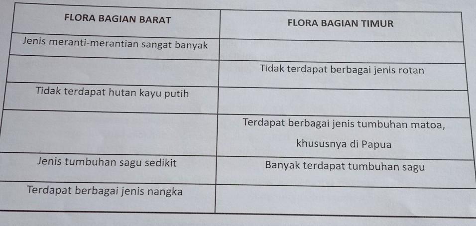 Menuliskan karakteristik flora/tumbuhan yang ada di indonesia bagian barat dan.